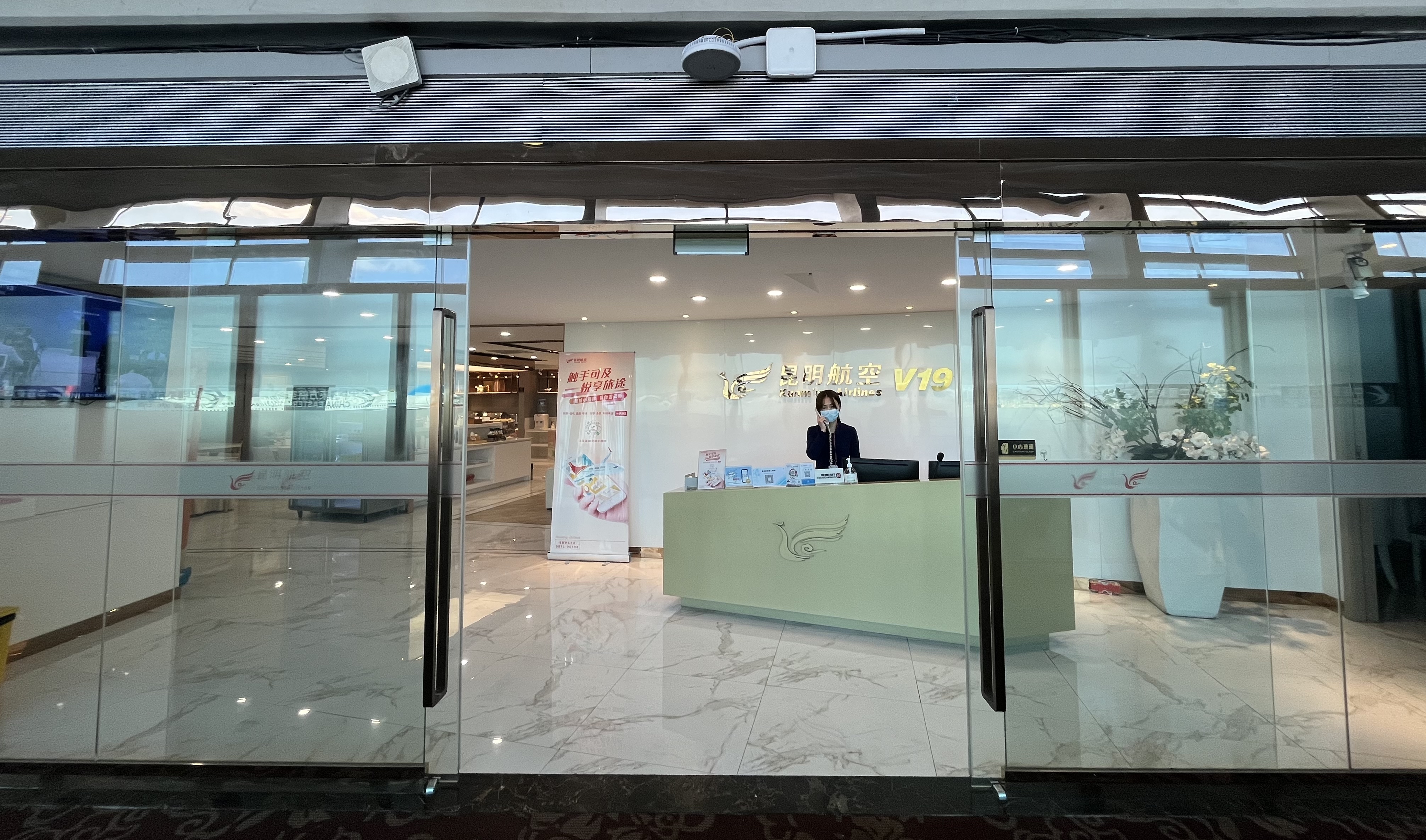 主航站楼,安检后, 安检后,右转直行至29号登机口对面扶手梯下楼(东航V8休息室对面)“昆明航空尊享阁V19休息厅”祥鹏航空V3贵宾休息室