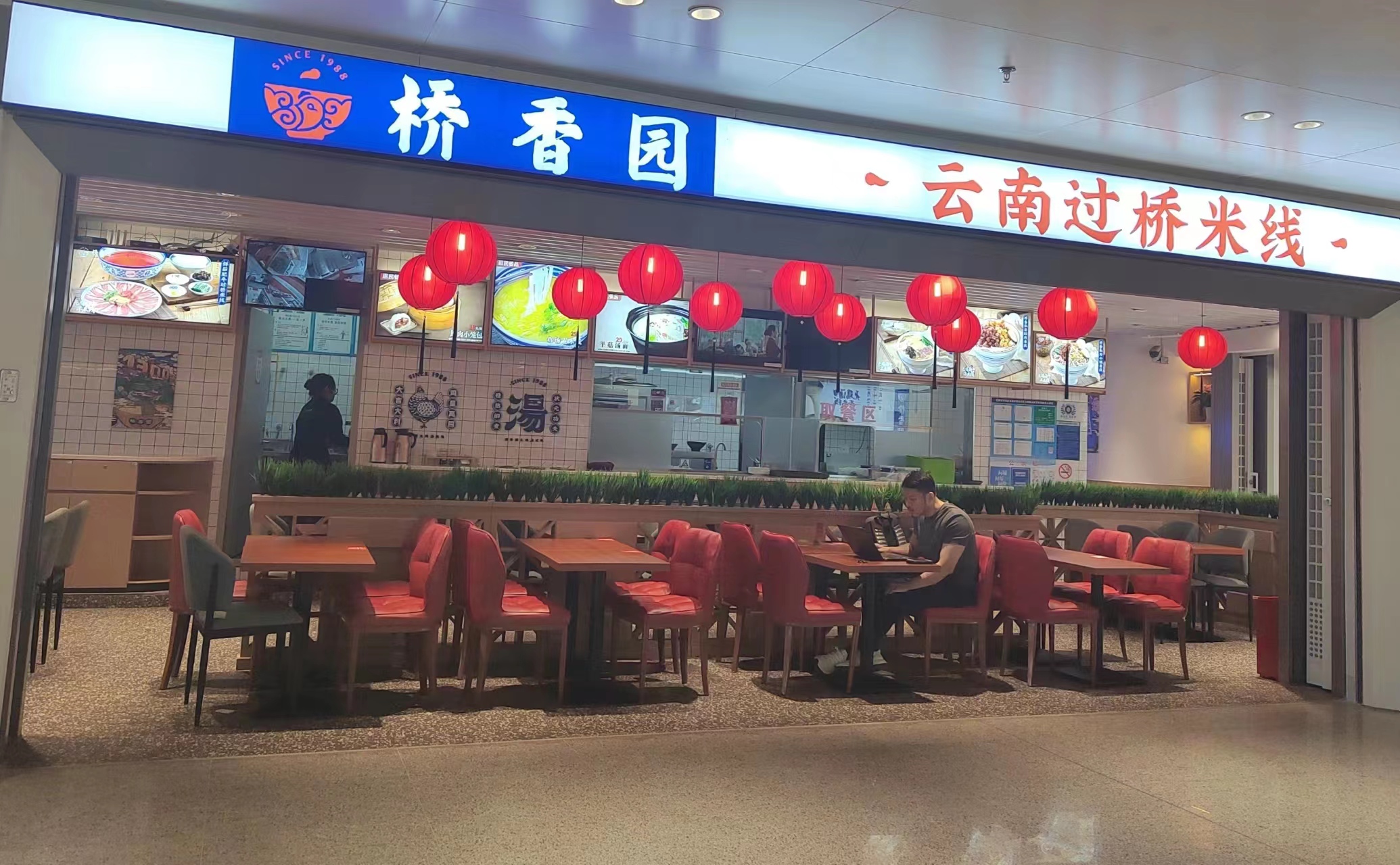 主航站楼,到达区, B1层到达层出B口扶梯下来左转餐食体验厅-桥香园-云南过桥米线