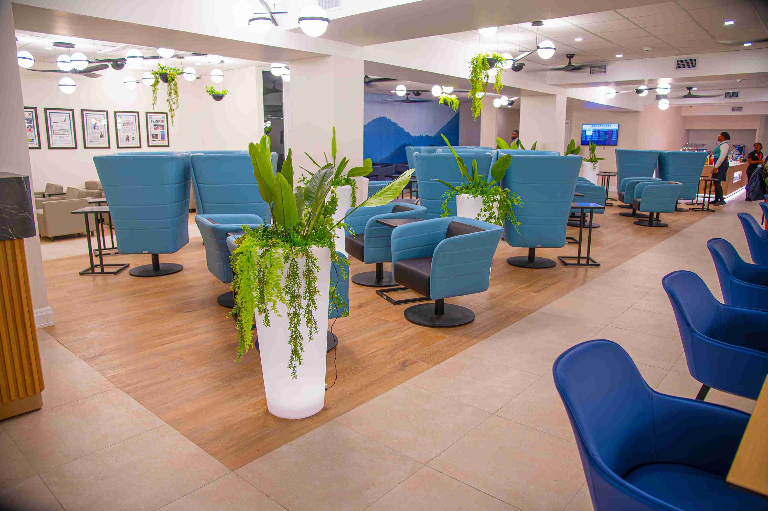 主航站楼,安检后, 安检后 - 通过护照检查后上楼,按照金士顿俱乐部出发休息室的标志,穿过美食广场。