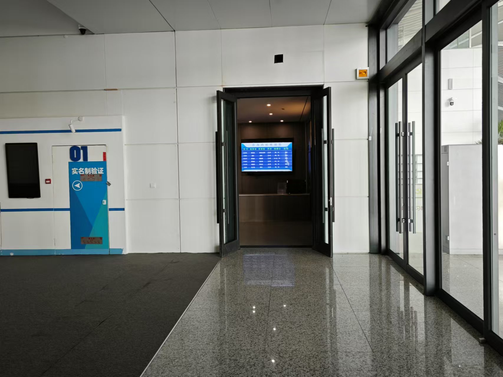 ,安检后, 青岛西站候车大厅安检后靠近1A检票口(到达服务台后由工作人员引导进厅)
